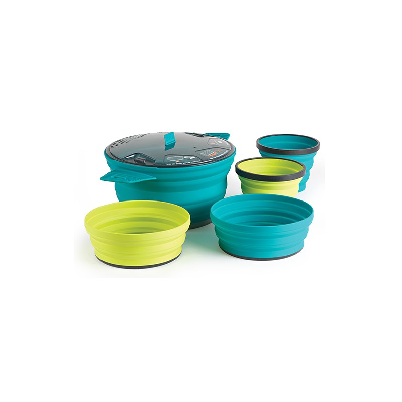 Fabricado en silicona de grado alimenticio flexible y bases de aluminio anodizado duro, resistente al calor del hornillo, la X-Series plegable es liviana, compacta y duradera.