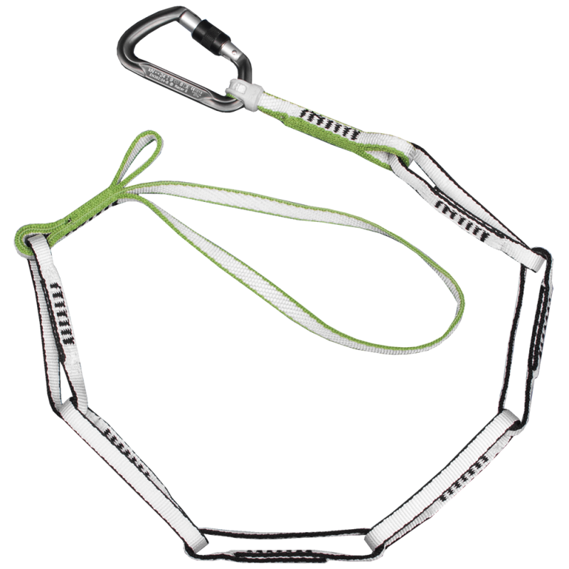 La Cadena Flexi Chain es un dispositivo flexible de anclaje y sujeción que permite seleccionar fácilmente la longitud adecuada para anclarnos sin necesidad de hacer nudos adicionales ni de utilizar EPI adicionales.