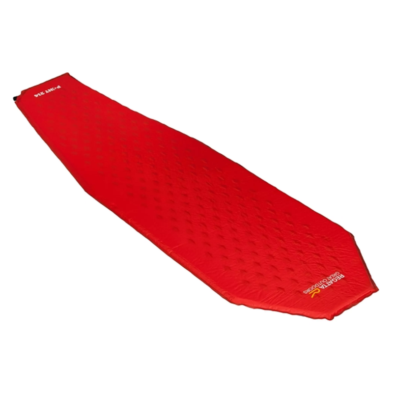 Esterilla de camping ultraligera auto-inflable con un diseño de espuma de corte de diamante que ahorra peso.